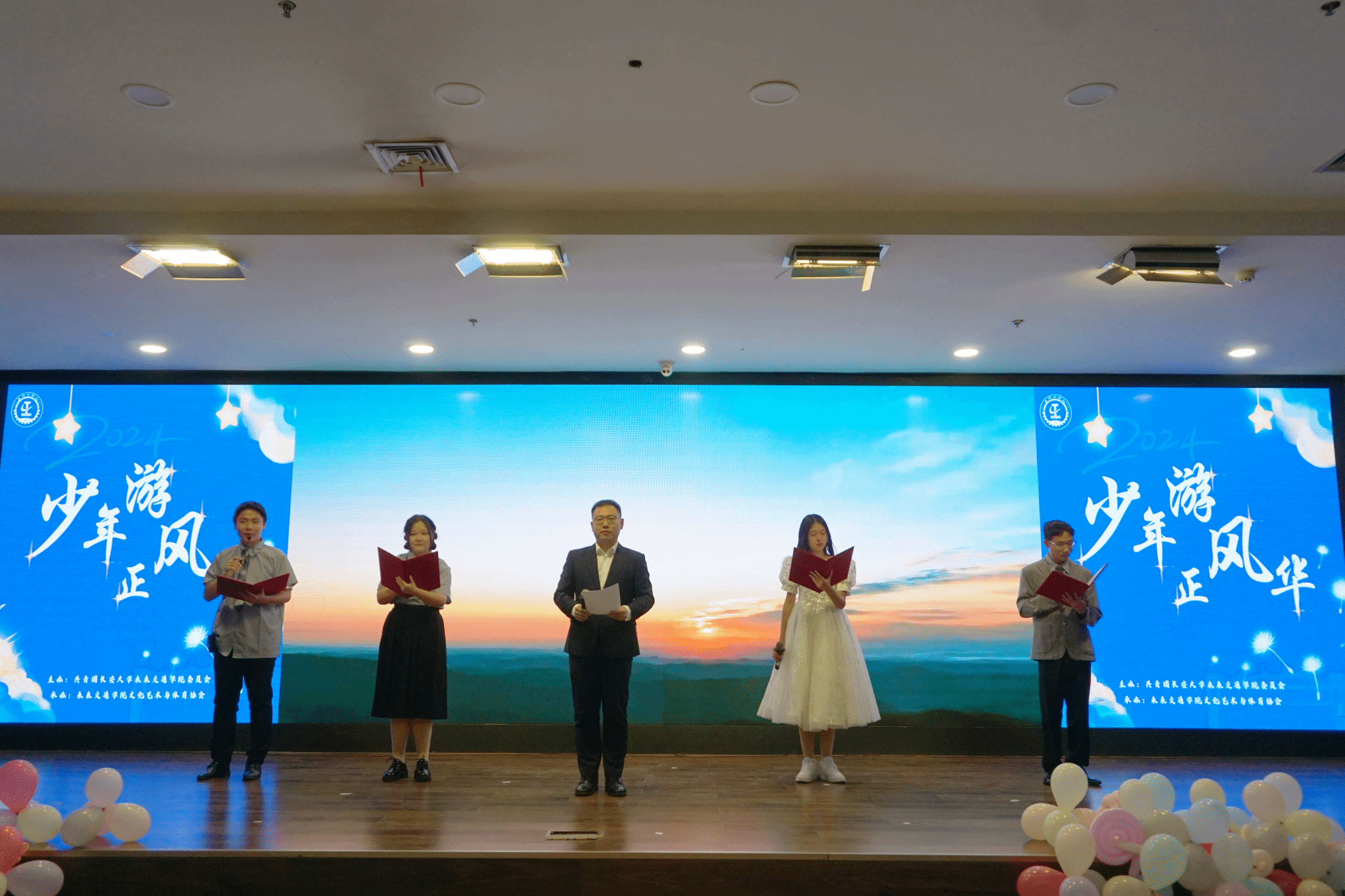 11月10日晚,未來交通學院在長安文化藝術中心三樓多功能報告廳隆重舉辦“少年游,正風華”2024級迎新聯(lián)歡晚會。新加坡工程院院士、學院院長Fwa Tien Fang,副院長湯穎穎、楊旭,系主任,新生班主任,教學與國際交流部、學生事務部成員與2024級全體本科生、研究生及其他年級學生代表共計230余人歡聚一堂,共襄盛舉,晚會由2021級本科生魏紫晗、2024級本科生陳洋共同主持。