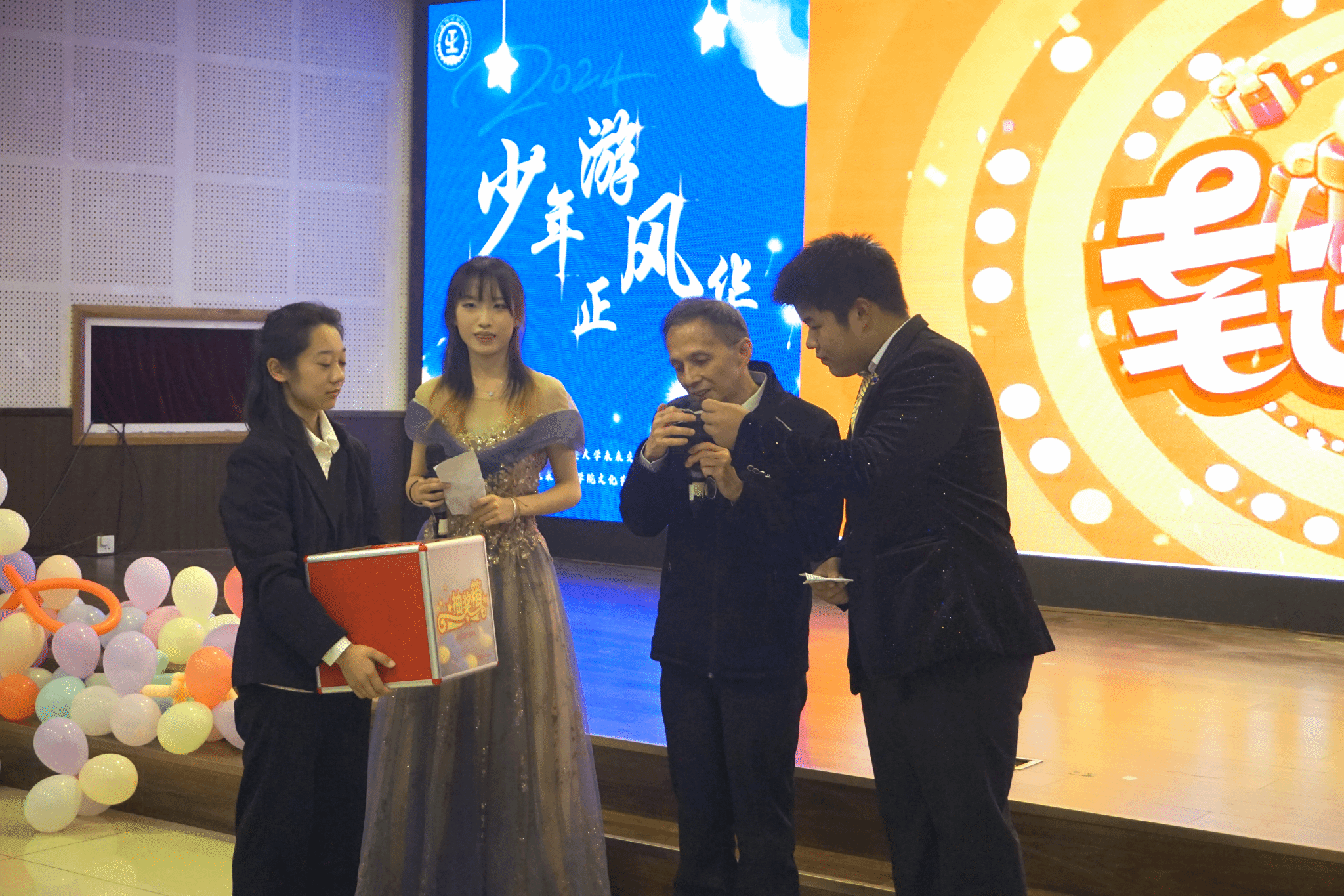 晚會的中場環(huán)節(jié)設置了游戲“你畫我猜”“聽歌識曲”“現(xiàn)場抽獎”等,同學們踴躍參與,現(xiàn)場氣氛熱烈非凡。