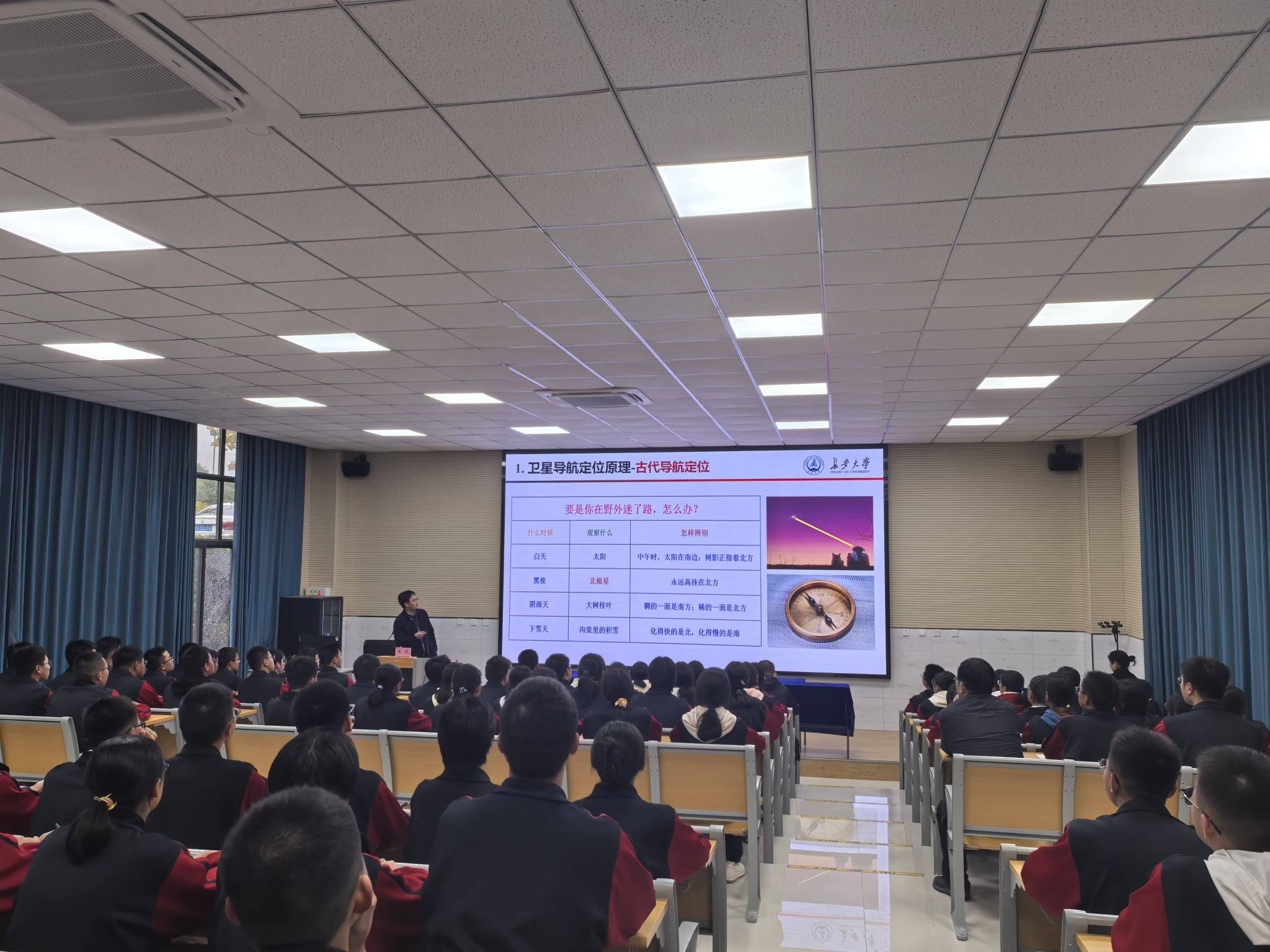 黨日活動結束后,地測學院一行赴商南一中座談交流,舉辦招生宣講會和北斗衛星科普講座。王樹瑩向學校贈送了紀念品,招生專員范高功向商南一中贈送了喜報。科普報告會上,朱武以“國之重器:北斗衛星導航系統”為題,系統介紹了衛星導航定位原理、技術應用、長安大學取得的研究成果,激發了學生們對科學技術的興趣和熱愛。歐陽韜詳細介紹了學校的辦學特色和優勢、專業設置以及招生政策,為商南一中的學生們提供了寶貴的升學指導。