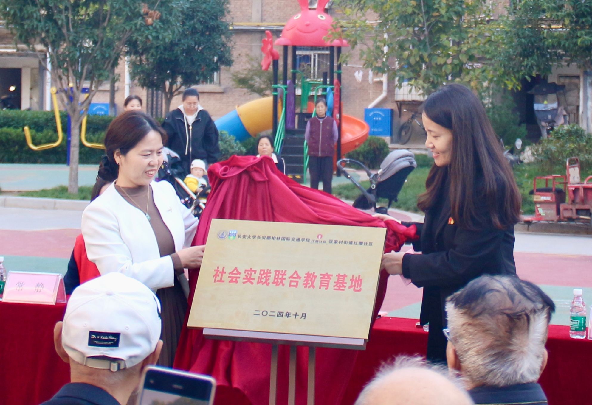 活動后,張艷萍和鄭倩共同為長安都柏林國際交通學(xué)院與紅纓社區(qū)共建社會實踐基地揭牌。