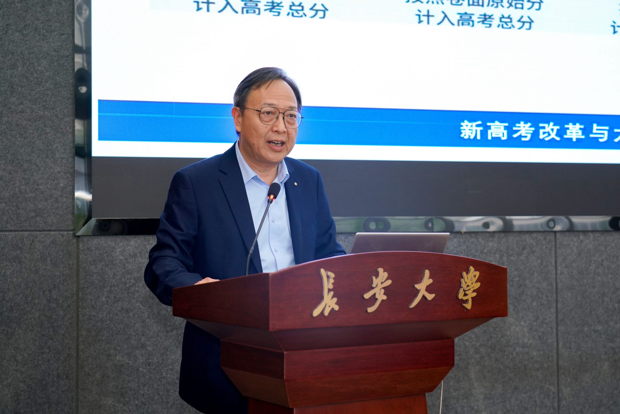 講座由暨南大學教授、博士生導師張淵明老師主講。他從新高考改革政策概述、新高考下的機遇和挑戰(zhàn)、新高考下的招生宣傳工作三個方面分享了在中國高考綜合改革、高校學科專業(yè)優(yōu)化、專業(yè)組設置、高校招生策略、高中生生涯規(guī)劃與選科指導等方面的多年研究經(jīng)驗,對2024年全國和陜西省高招數(shù)據(jù)進行了復盤,深入分析了各省新高考改革政策內(nèi)涵和現(xiàn)狀。針對長安大學實際情況,張淵明教授援引其他兄弟高校、高考綜合改革省份高校和同行業(yè)院校的多重應對案例,對學校2025年本科招生專業(yè)組設置、考生志愿填報策略、招生宣傳成效提升進行了精準的指導,對招生工作的提升提出了中肯的建議。