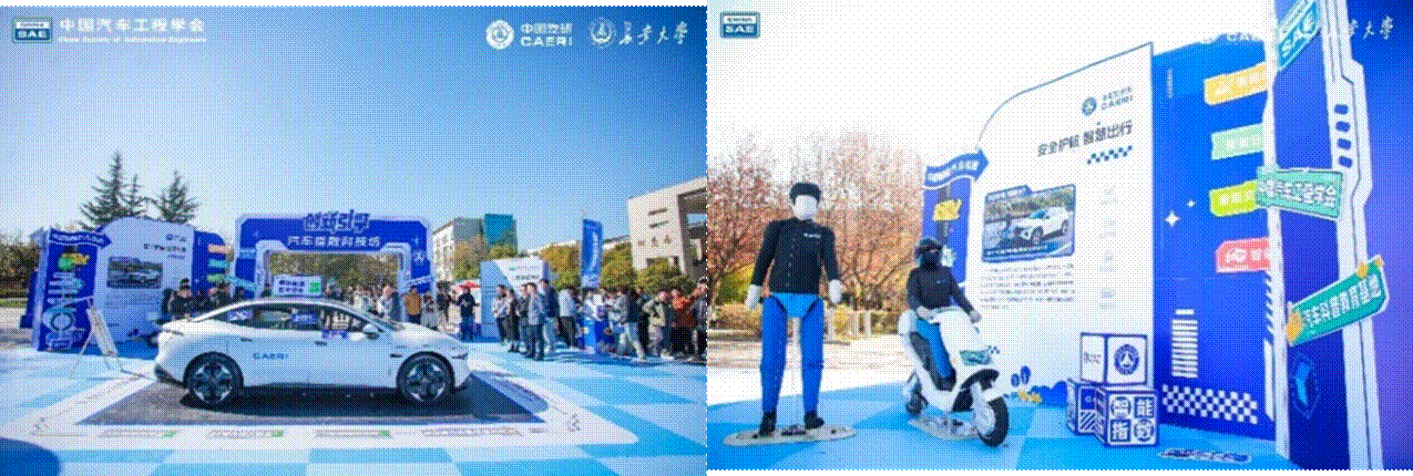本次活動(dòng)分為前沿技術(shù)報(bào)告和現(xiàn)場(chǎng)展覽兩個(gè)部分。前沿技術(shù)報(bào)告部分,來(lái)自中國(guó)汽研、中國(guó)汽車工程學(xué)會(huì)、長(zhǎng)安大學(xué)的專家就汽車安全、智能駕駛、燃料電車、車身結(jié)構(gòu)等汽車熱點(diǎn)流域的研究進(jìn)展和成果進(jìn)行了詳細(xì)介紹,為師生們搭建起一個(gè)富有創(chuàng)新活力的學(xué)術(shù)交流平臺(tái);現(xiàn)場(chǎng)展覽部分,各方領(lǐng)導(dǎo)共同啟動(dòng)了“創(chuàng)新引擎·汽車指數(shù)科技坊”,中國(guó)汽研品牌宣傳中心副主任杭錦鋒主持碰撞試驗(yàn)車開(kāi)箱儀式,指數(shù)管理中心首席專家趙會(huì)向參展嘉賓和師生們解讀了汽車側(cè)碰試驗(yàn)的目的意義、測(cè)評(píng)規(guī)程亮點(diǎn)以及結(jié)果評(píng)價(jià)方式等,并對(duì)中國(guó)汽研自主研發(fā)的國(guó)內(nèi)首個(gè)中國(guó)特色側(cè)碰壁障AC-MDB、智能指數(shù)成人目標(biāo)物和兒童目標(biāo)物等進(jìn)行了介紹。汽車指數(shù)科技坊通過(guò)實(shí)物展示、專業(yè)解讀、互動(dòng)體驗(yàn)、視頻展播等多種形式,向長(zhǎng)安大學(xué)師生展示了3大汽車指數(shù)的最新研究成果,得到參展嘉賓和師生們的一致認(rèn)可和肯定。
