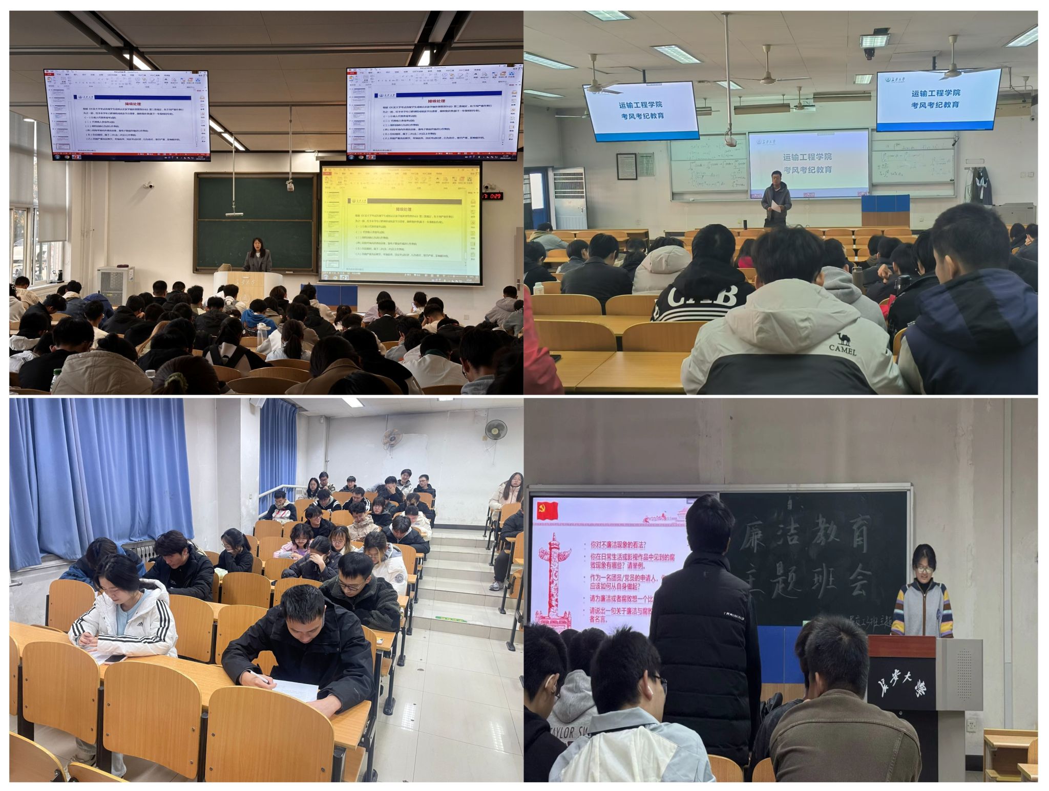 強(qiáng)化廉潔教育,營(yíng)造學(xué)紀(jì)知紀(jì)守紀(jì)氛圍。學(xué)院堅(jiān)持以優(yōu)良師德師風(fēng)、教風(fēng)促進(jìn)學(xué)風(fēng)建設(shè),學(xué)院黨委組織30多名師生黨員赴陜西師范大學(xué)教育博物館開(kāi)展“不忘教育初心、牢記育人使命”主題黨日活動(dòng)。注重對(duì)學(xué)生遵規(guī)守紀(jì)的教育引導(dǎo)工作,通過(guò)抓考風(fēng)促學(xué)風(fēng),嚴(yán)肅考風(fēng)考紀(jì)。學(xué)院結(jié)合廉潔教育主題活動(dòng),通過(guò)召開(kāi)班會(huì)、周見(jiàn)面等多種形式對(duì)學(xué)生開(kāi)展警示教育。開(kāi)展誠(chéng)信考試教育,組織全體學(xué)生簽署《誠(chéng)信考試承諾書(shū)》,培養(yǎng)和加強(qiáng)學(xué)生誠(chéng)信意識(shí)。輔導(dǎo)員組織學(xué)生認(rèn)真學(xué)習(xí)《長(zhǎng)安大學(xué)學(xué)生手冊(cè)》,解讀《長(zhǎng)安大學(xué)考試違規(guī)學(xué)生成績(jī)認(rèn)定及學(xué)籍處理管理辦法》和《長(zhǎng)安大學(xué)學(xué)生違紀(jì)處分規(guī)定》等相關(guān)文件,幫助學(xué)生堅(jiān)守底線、不越紅線。