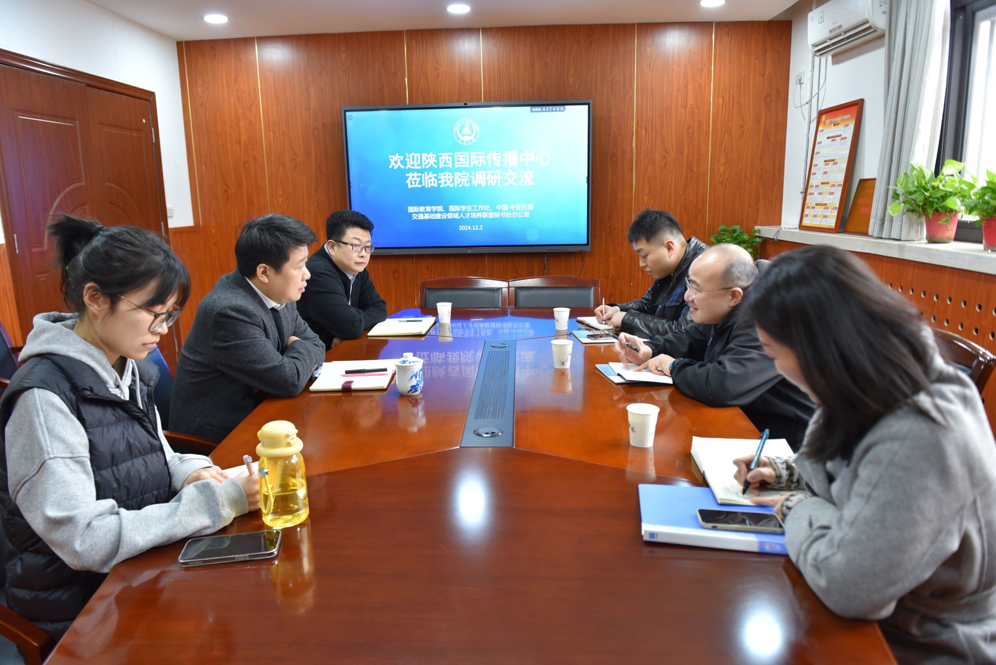 12月2日下午,陜西國際傳播中心一行來國際教育學院交流座談。陜西國際傳播中心主任王冬、副主任范文、記者張蕾,長安大學國際教育學院院長張偉、副院長楊望暾及相關科室負責人參加座談會。