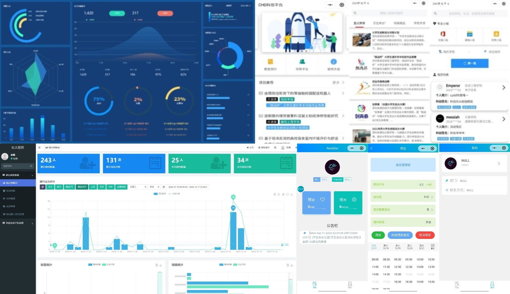 完善“一體化”學生管理矩陣,依托“青春長大”“我在長大”等系統,記錄學生成長,生成多維度“智慧”評價,提升學生獲得感。推進網格化管理平臺建設,助力智慧網格,形成點、片、面相結合的多層次社區網格化管理系統。完整配置學院學生公寓樓網格化管理,依托學校“園區—公寓樓—樓層—宿舍”四級“網格化”管理體系,構建“學院—學生安全衛士—學生樓層長—宿舍長”的信息通報體系,負責信息的采集、反饋,應急事件的處理。堅持治理為基、應用為王,圍繞學生教育、管理、服務等重點工作,發揮學院專業優勢,學院學生團隊精心打造“輔導員心談話系統”“CHU科創平臺”“長大易班服務”等師生服務平臺,提供集信息采集、問卷調研、成長追溯、數據分析等一體的智慧服務,涵蓋師生學習生活等25項日常事務辦理,有效服務全校師生。針對學院師生日常事務需求打造“活動室預約系統”“CHU智能客服平臺”,實現活動室預約、智能客服、互動問答等全流程信息化,真正打通社區育人“最后一公里”,提升師生幸福感和體驗感。