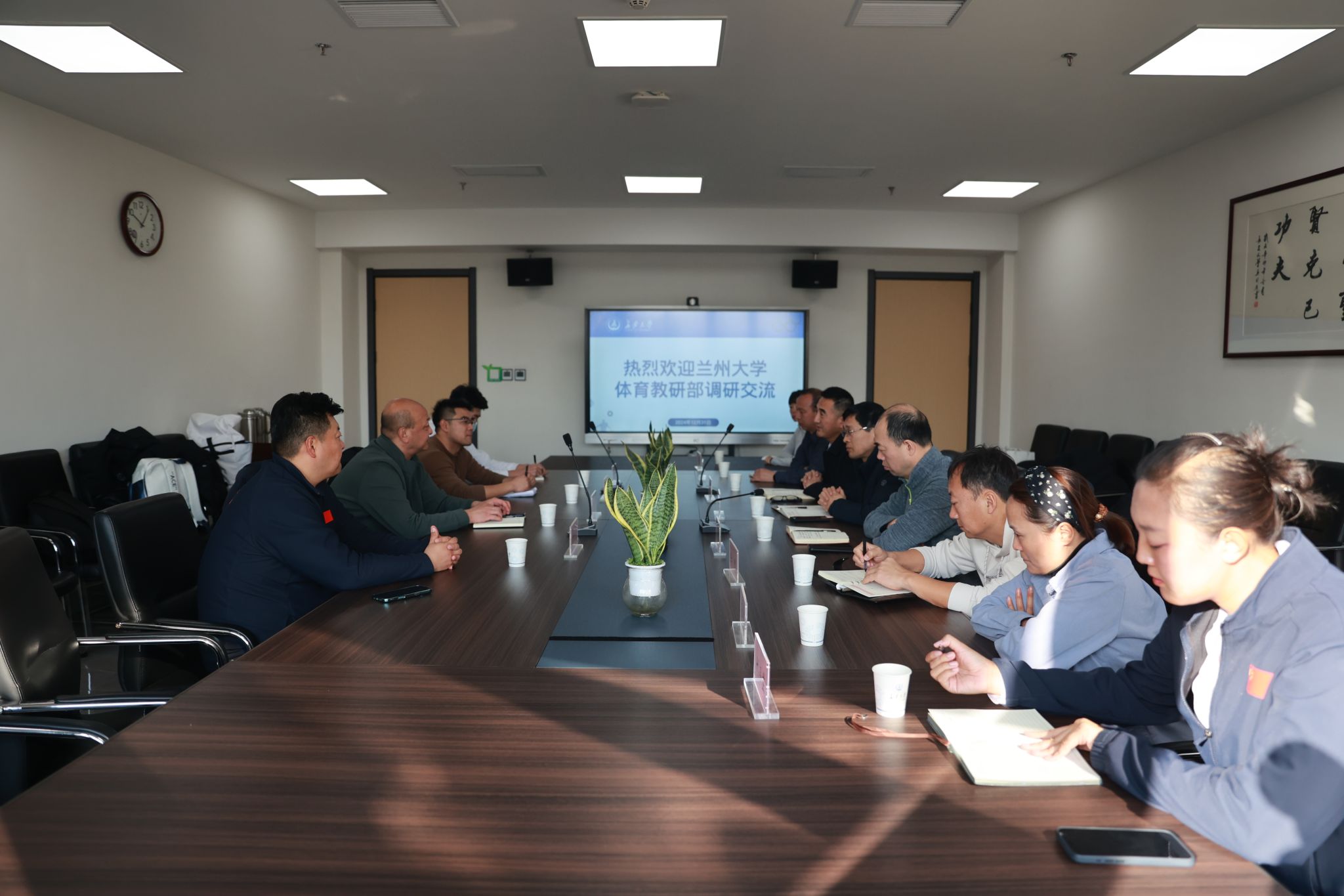 12月31日上午,蘭州大學體育教研部主任馮濤一行4人到我校進行體育工作調研交流。體育系黨總支書記唐少君、部(系)主任杭蘭平,副主任米戰、楊清軒,體育部(系)部分中層干部出席。體育工作座談會在北校區師生服務大廳二層第一會議室舉行。