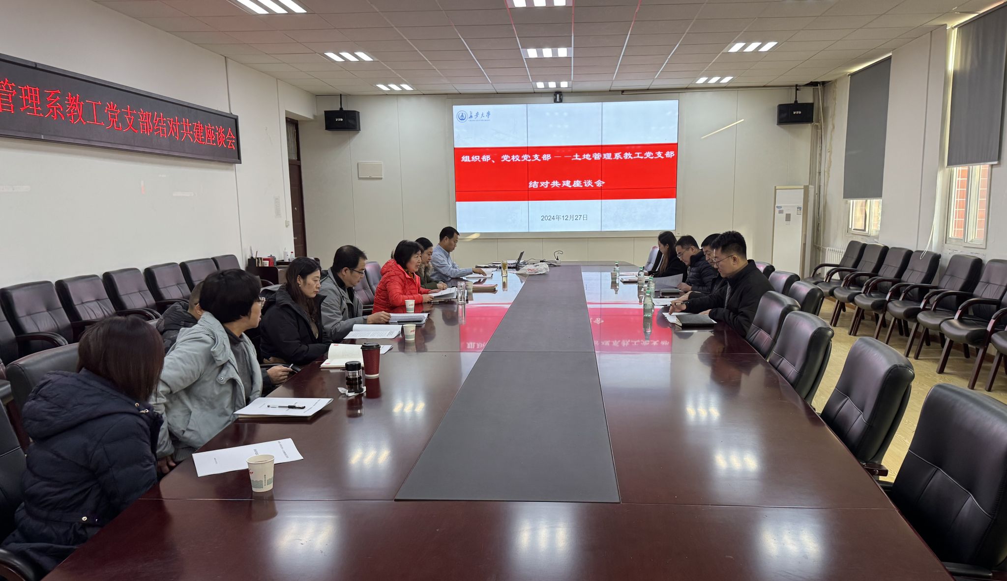 12月27日下午,組織部、黨校黨支部與土地管理系教工黨支部結對共建座談會在南校區東院土地工程學院黨建活動室召開。兩個支部黨員、土地管理系全體教師參加會議,土地工程學院黨委書記李雪梅主持活動。
