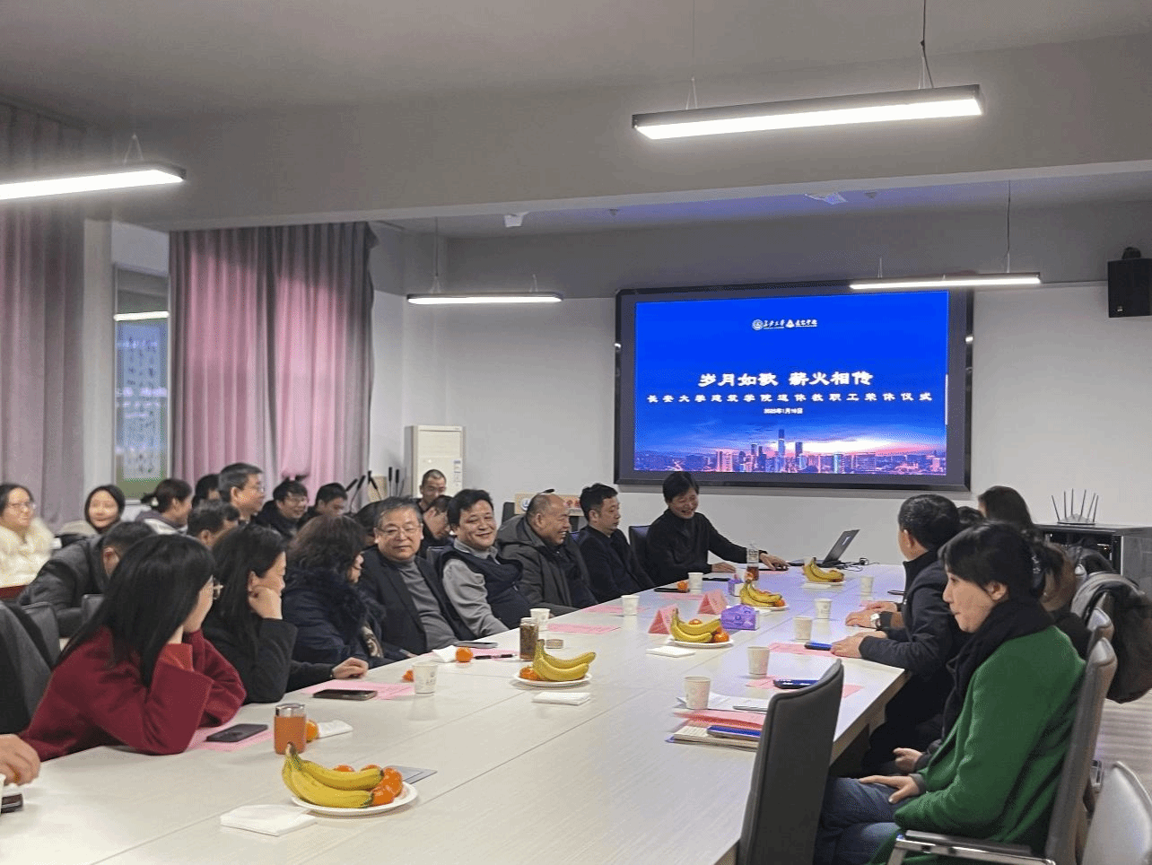 1月10日,建筑學院在南校區西院建筑館三樓會議室舉辦“歲月如歌 薪火相傳”——建筑學院退休教職工榮休儀式,向為學院奉獻多年的李明、胡立軍兩位榮休老師表達崇高敬意與美好祝福。院領導班子、各系所辦主任及教職工代表參會。儀式由院黨委副書記、副院長馮鵑主持。