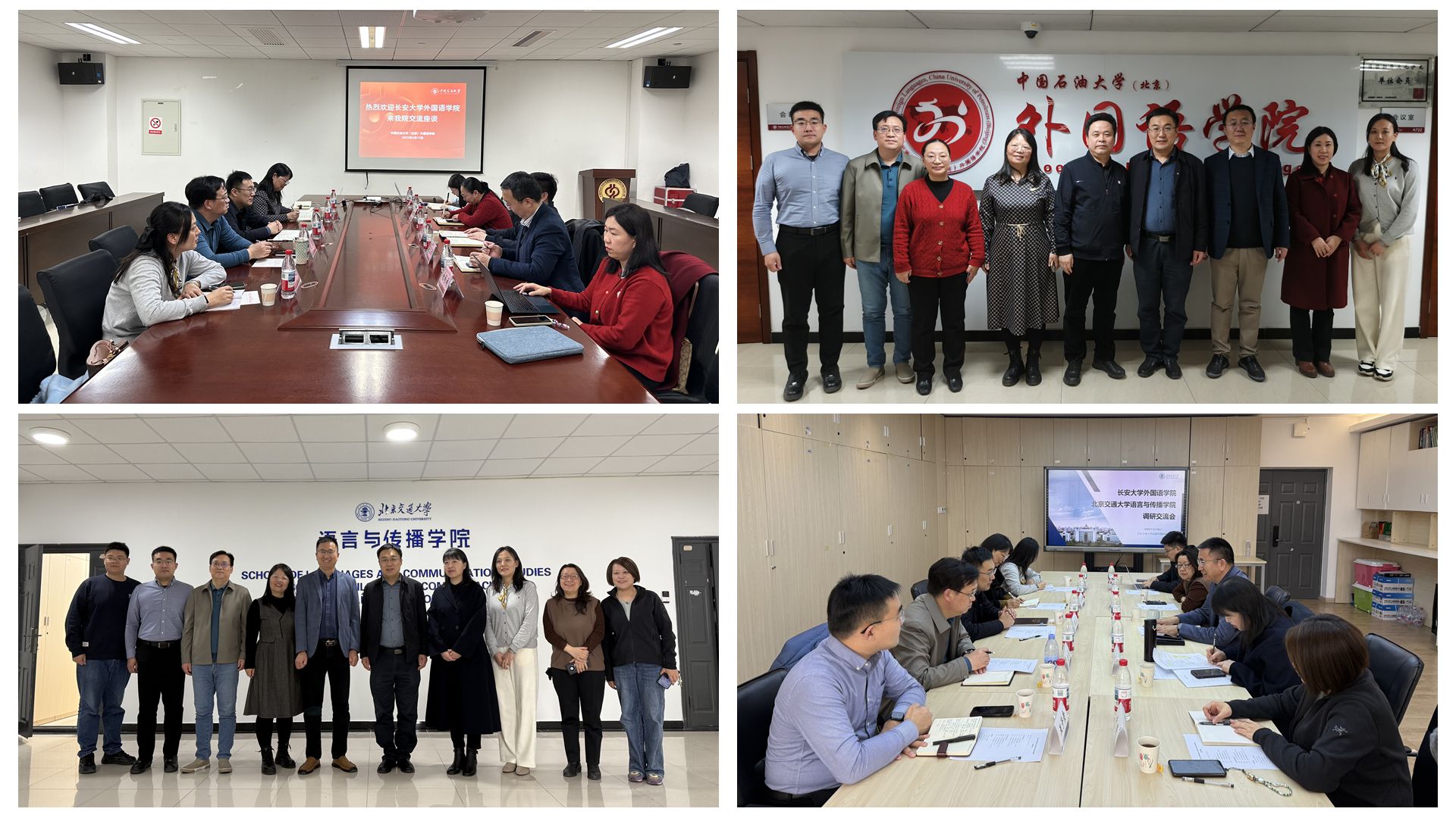 在中國石油大學(xué)(北京)外國語學(xué)院,雙方對(duì)各自辦學(xué)理念、辦學(xué)特色、歷史文化等進(jìn)行了詳細(xì)介紹,并圍繞黨建、公共英語教學(xué)改革、學(xué)生就業(yè)等方面進(jìn)行了深入研討。雙方表示,將以此次交流為嶄新起點(diǎn),進(jìn)一步加強(qiáng)溝通協(xié)作,不斷推動(dòng)教育質(zhì)量提升,共同探索人才培養(yǎng)創(chuàng)新模式。中國石油大學(xué)(北京)外國語學(xué)院黨委書記周玉成、黨委副書記劉春陽、副院長(zhǎng)逯義峰、英語系主任唐萌萌等相關(guān)負(fù)責(zé)人參加座談會(huì)。