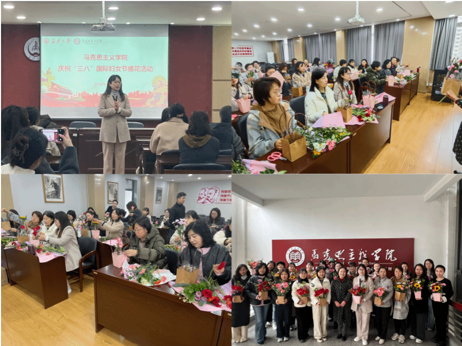 為慶祝第115個國際婦女節,豐富學院女教職工的精神文化生活,3月5日上午,馬克思主義學院工會在基礎樓五層報告廳舉辦了慶祝“國際婦女節”藝術插花活動。院黨委書記李小芹和學院女教工代表參加。
