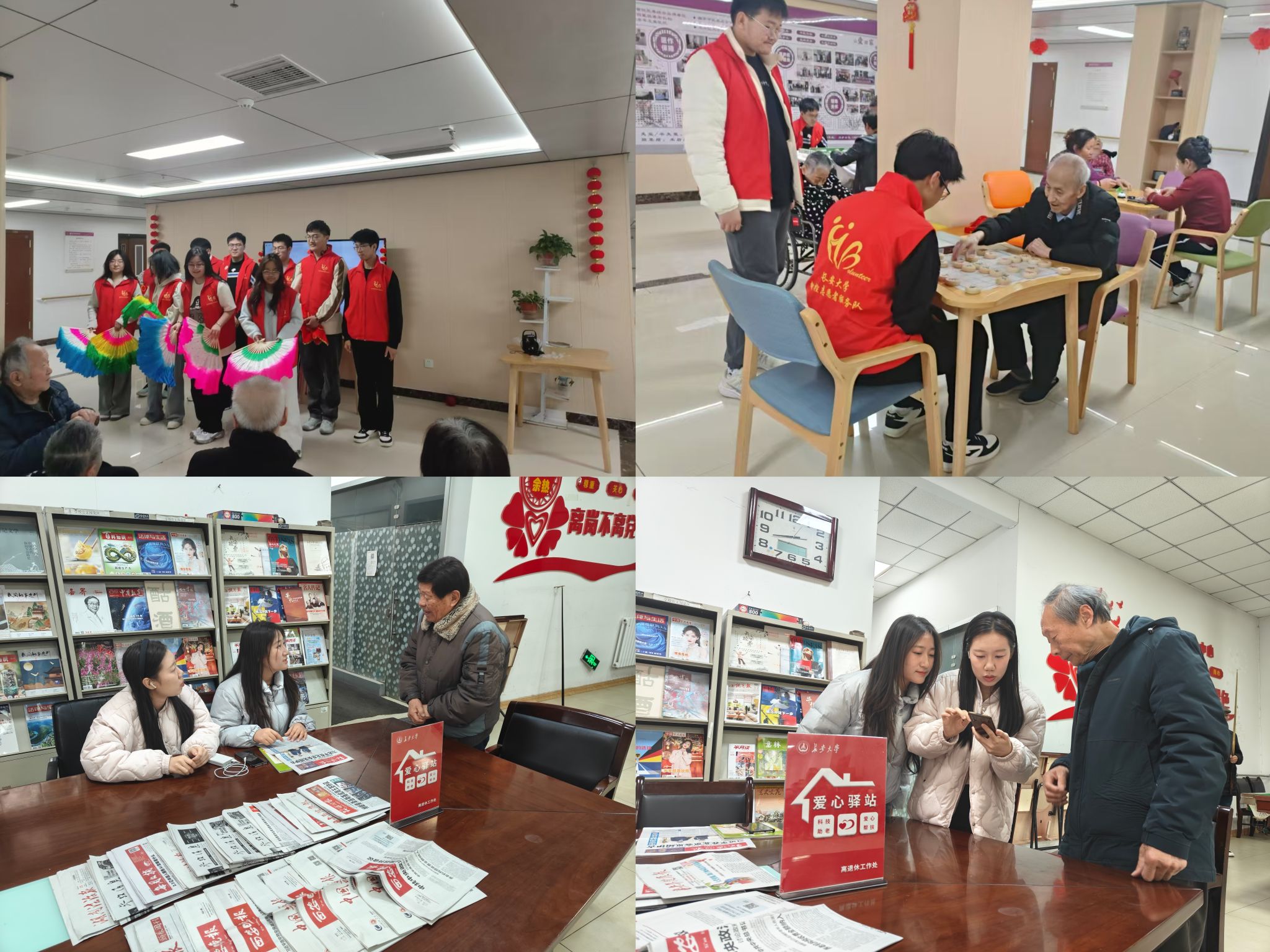 聚焦銀齡關(guān)懷,傳遞溫暖力量。弘揚(yáng)尊老敬老傳統(tǒng)美德,學(xué)院組織志愿者深入社區(qū)與養(yǎng)老機(jī)構(gòu),開展“青春暖夕陽(yáng),志愿?jìng)鳒厍椤别B(yǎng)老院志愿活動(dòng),通過打掃房間、陪伴聊天、文藝表演等形式為老人送去關(guān)懷;針對(duì)離退休老教師面臨的“數(shù)字鴻溝”問題,開設(shè)每周一次“愛心驛站”志愿服務(wù)活動(dòng),一對(duì)一教授智能手機(jī)使用技巧,助力銀齡群體融入智慧生活。