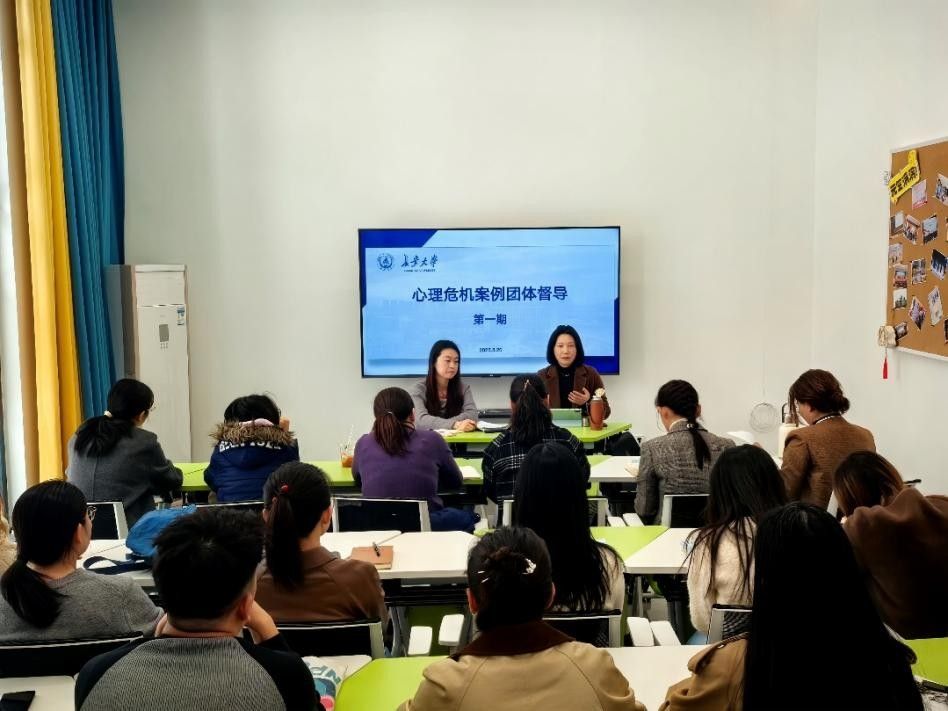 為深入推進(jìn)新時(shí)代學(xué)生心理健康工作專項(xiàng)行動(dòng),強(qiáng)化我校心理育人工作質(zhì)量,進(jìn)一步提升育人隊(duì)伍心理危機(jī)識(shí)別與干預(yù)能力與水平,3月20日下午,學(xué)校在北校區(qū)鴻漸園學(xué)生社區(qū)心理團(tuán)體輔導(dǎo)室舉辦第一期心理危機(jī)案例團(tuán)體督導(dǎo)活動(dòng),來自各院系30余名專職輔導(dǎo)員、心理中心專任教師參加活動(dòng)。