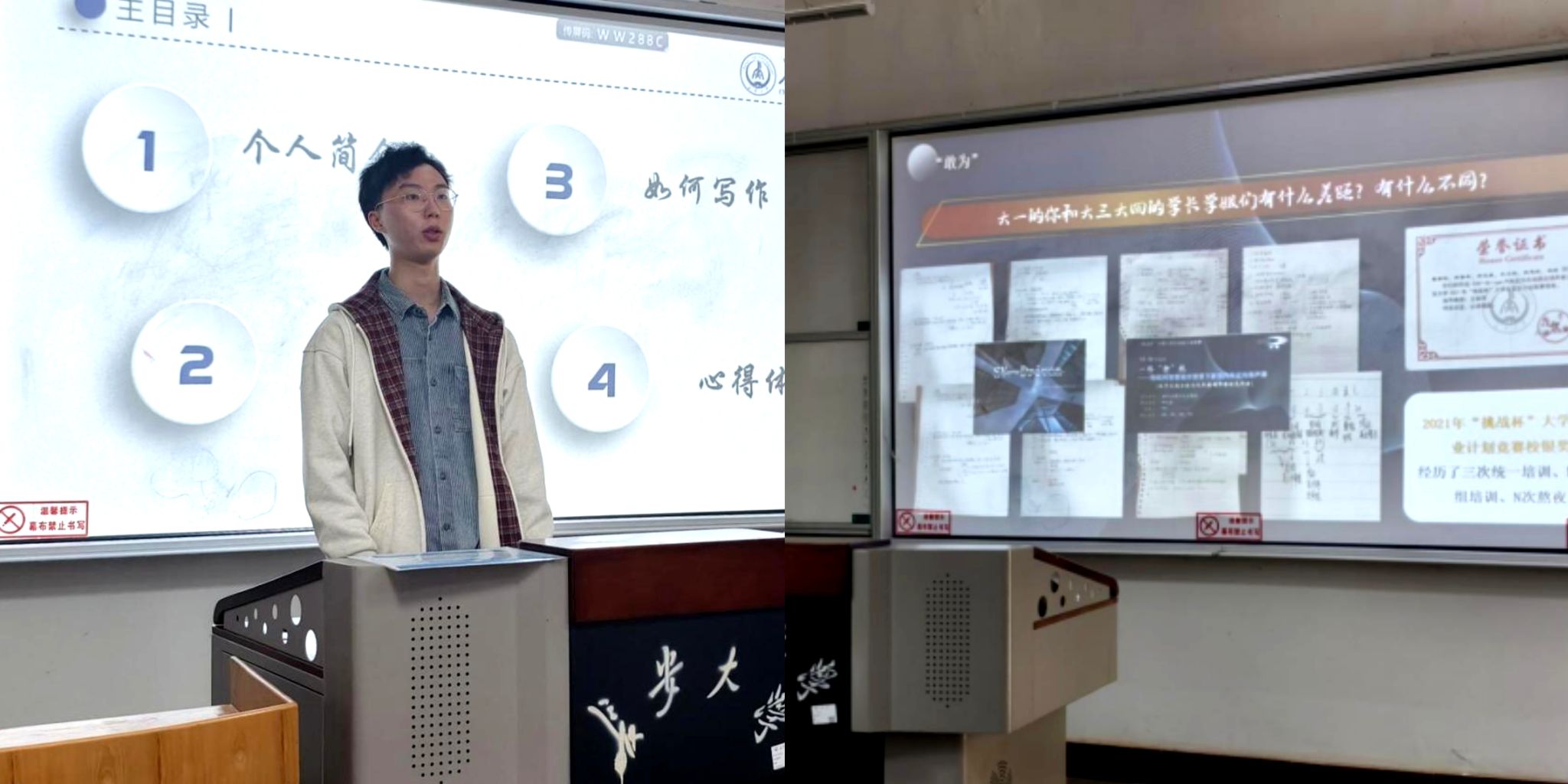 以“學(xué)術(shù)研究與創(chuàng)新創(chuàng)業(yè)”為焦點(diǎn),深耕學(xué)術(shù)創(chuàng)新,勇攀科創(chuàng)高峰?!半p創(chuàng)之星”牛丙成以“道術(shù)論”和“生命線”為框架,詳解學(xué)術(shù)論文寫作的七大要點(diǎn);“雙創(chuàng)之星”霍嘉怡結(jié)合自身從校賽銀獎(jiǎng)到國家級獎(jiǎng)項(xiàng)的科創(chuàng)經(jīng)歷,在線上鼓勵(lì)同學(xué)們“勇于試錯(cuò)、在摸索中成長”。第三場宣講會(huì)錨定“創(chuàng)新突圍”,通過科研實(shí)戰(zhàn)經(jīng)驗(yàn)解鎖學(xué)術(shù)進(jìn)階密碼。