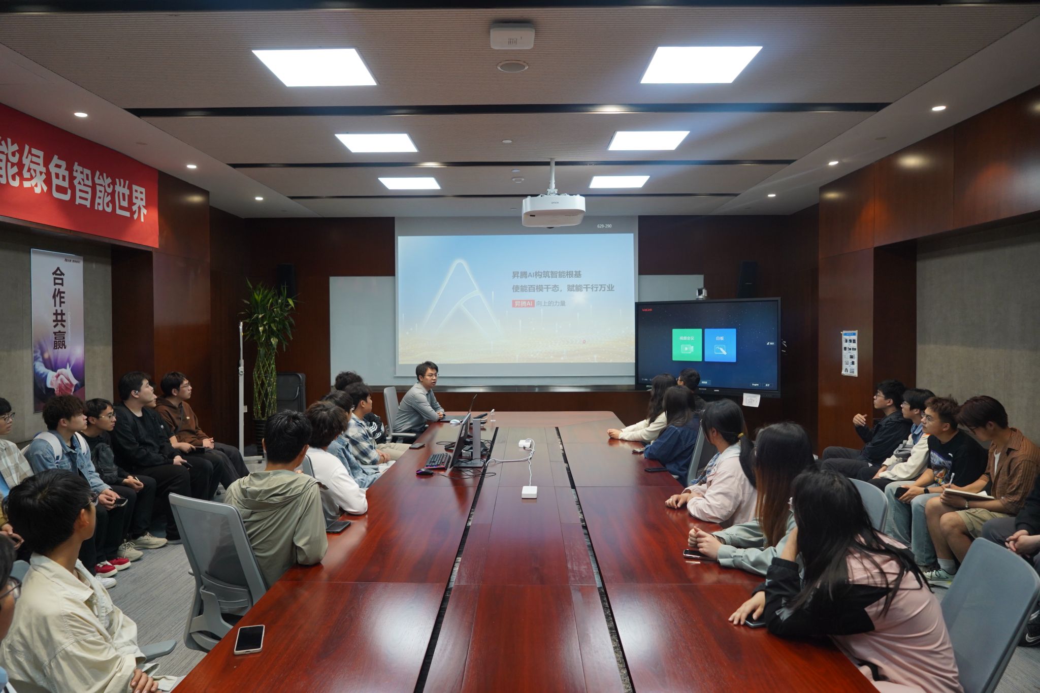 在西研所數字化展廳,華為發展史上的兩大里程碑引發關注:華為自1987年成立以來的首款自研CandC08交換機,開啟華為近40年的自主研發探索;2000年9月成立的西研所從最初專注基礎通信技術研發的小團隊起步,到如今擁有約20000名員工,成為華為全球規模最大研發基地之一,承載光通信、智能汽車解決方案等戰略業務。同學們在昇騰AI處理器實體芯片、智能車燈交互系統等展品前駐足,技術專家現場解析了華為“硬件開放、軟件開源”的生態戰略如何賦能千行百業數字化轉型。