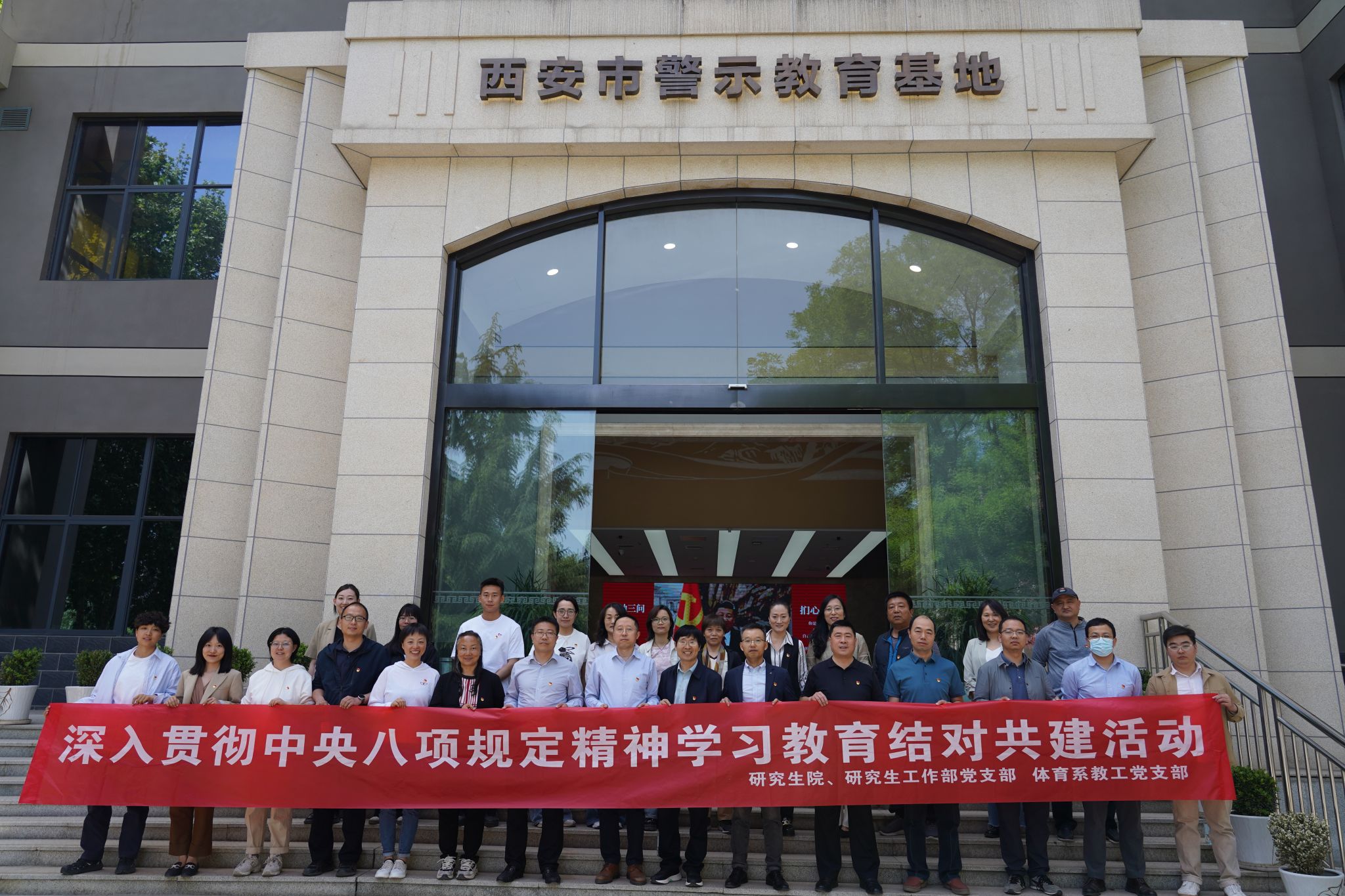 為進一步強化黨員干部廉潔自律意識,深化作風建設,筑牢拒腐防變的思想防線。4月23日下午,研究生院、研究生工作部黨支部與體育系教工黨支部聯合開展深入貫徹中央八項規定精神學習教育支部共建活動,前往西安市警示教育基地參觀學習。