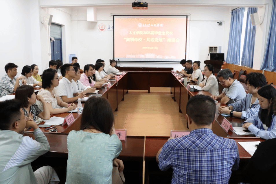 座談會上,何紅娟為全體畢業生送上真摯祝福。在臨別遠行之際,她對同學們提出幾點期望:一是保持赤子之心,秉承人文學院的優良傳統,勇敢追夢,追求卓越,以人文情懷溫暖社會,在浮躁中保持思想的清醒獨立;二是做到知行合一,將萬卷書化作行萬里路的底氣,在實干中成就人生;三是始終胸懷家國,把個人理想融入黨和國家事業之中,在實現中華民族偉大復興的新征程中做有格局、有擔當的人文使者;四是勇擔時代使命,積極關注社會、關注民生,以明確的目標朝著正確的方向行穩致遠,努力成為有骨氣、有格局、有作為的社會棟梁之才。最后,她以“志之所趨,無遠弗屆”深情祝愿同學們在時代的浪潮中書寫屬于自己的青春華章。
