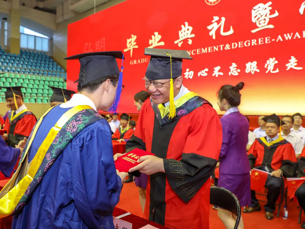 副校長(zhǎng)賀拴海宣讀了關(guān)于授予2021屆春季研究生博士、碩士學(xué)位的決定。校黨委副書(shū)記黎開(kāi)誼教授宣讀了關(guān)于表彰2021屆優(yōu)秀畢業(yè)研究生、畢業(yè)生優(yōu)秀黨員的決定。校領(lǐng)導(dǎo)和院士為2021屆優(yōu)秀畢業(yè)研究生代表、畢業(yè)生優(yōu)秀黨員代表頒發(fā)榮譽(yù)證書(shū)。