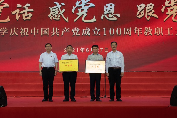 經過評選,公路學院、信息學院獲得一等獎,機關一分會、建筑學院分會、馬克思主義學院分會、機關二分會獲得二等獎,經管學院分會、人文學院分會、運輸學院分會、建工學院分會等八支隊伍獲得三等獎,外語學院分會、理學院分會、材料學院分會、圖書館分會等十二支隊伍獲得優秀獎。為此次活動獻上精彩表演的離退休教職工和教工合唱團獲得優秀表演獎。參加活動的校領導為獲獎隊伍頒獎。