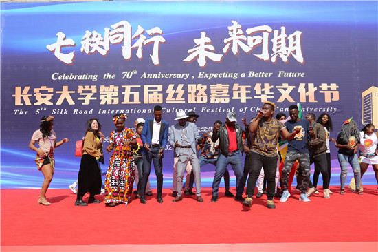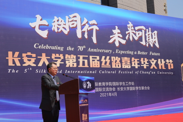 4月18日下午,長安大學第五屆絲路嘉年華文化節開幕式在北校區樹蕙園廣場隆重舉行。本屆國際文化節以“七秩同行 未來可期(Celebrating the 70th Anniversary, Expecting aBetterFuture)”為主題,獻禮長安大學70周年校慶,共有84個國家的數千名中外師生通過“線上”“線下”相結合的方式參與其中。