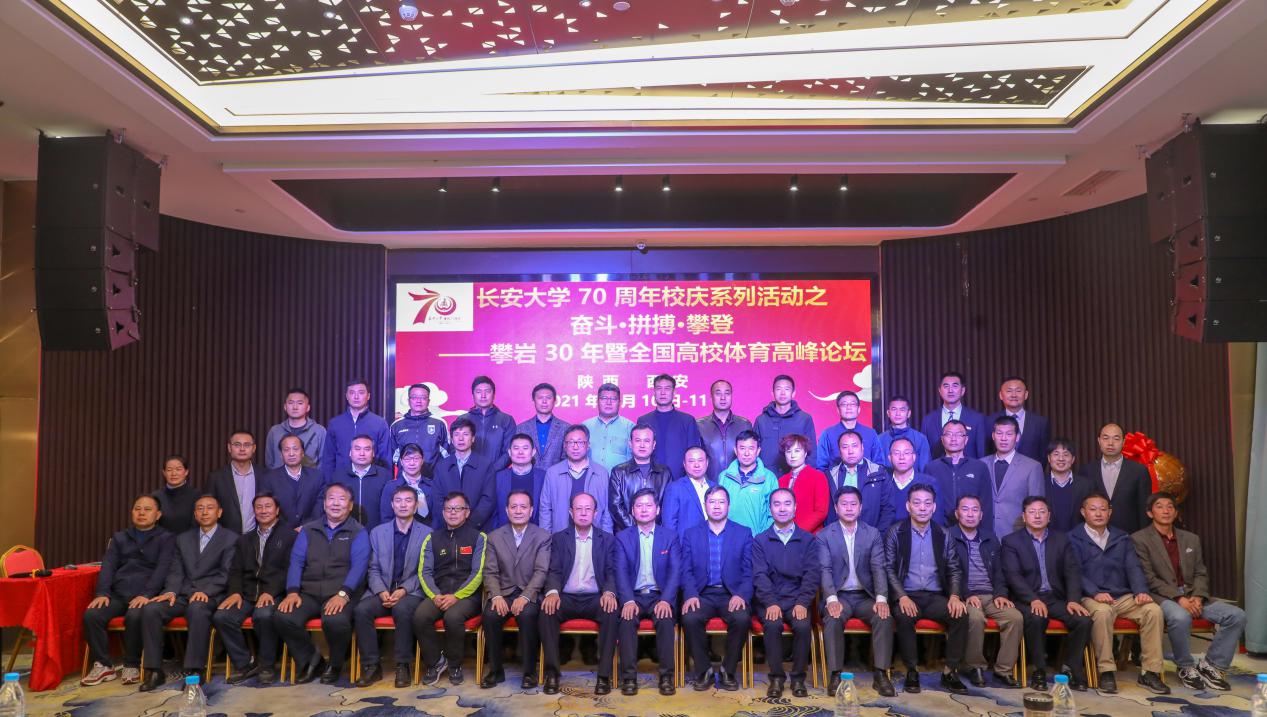 4月11日上午,長安大學70周年校慶系列活動之“奮斗·拼搏·攀登 ——攀巖30年暨全國高校體育高峰論壇”在西安舉行。校黨委副書記黎開誼,中國大學生體育協會攀巖分會副主席甘宏禮、秘書長朱江華,中國登山協會副秘書長羅申,陜西省教育廳體衛藝處處長劉宏恩,陜西省學生體育協會主席李鳴,以及來自清華大學、北京大學、西安交通大學、西北工業大學等39所院校體育部(學院、系)領導、專家學者、企事業單位代表及長安大學師生、校友等近200人出席。開幕式由體育部(系)主任杭蘭平主持。