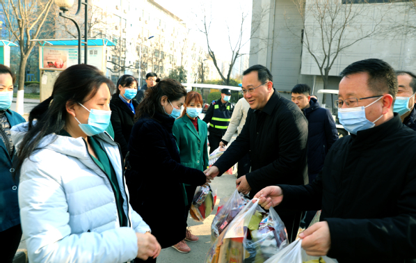 2月8日上午,在2021年春節來臨之際,學校全體校領導分別在北校區,南校區東院、北院、西院和長安路、翠華路、育才路、崇業路等住宅區,看望慰問了春節期間堅守在工作崗位上的職工。