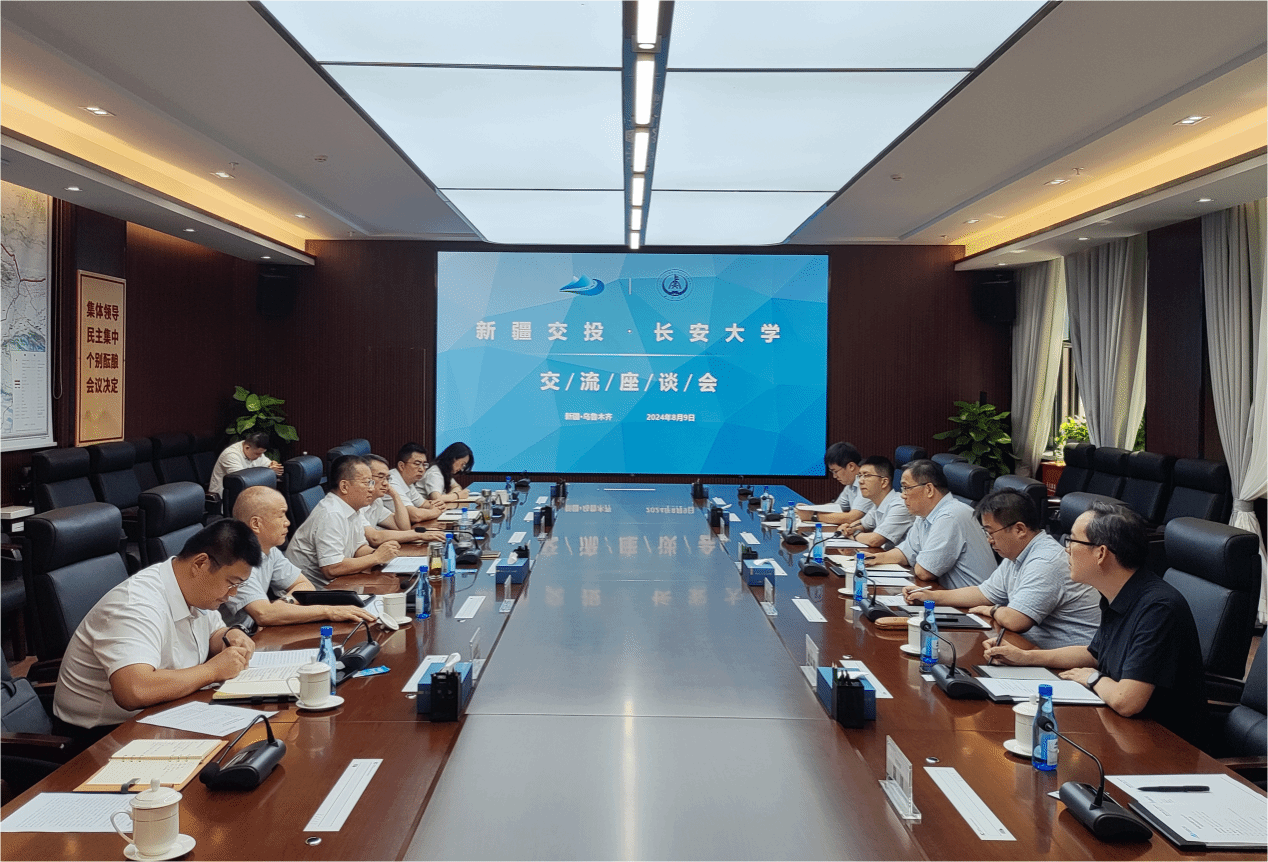 8月9日下午,沙愛民一行與新疆交通投資(集團(tuán))有限責(zé)任公司舉行座談會,集團(tuán)黨委書記、董事長孫澤強(qiáng)主持座談會。沙愛民介紹了學(xué)校在科學(xué)研究、人才培養(yǎng)、社會服務(wù)等方面取得的成效。他指出,長安大學(xué)與新疆交投集團(tuán)合作基礎(chǔ)深厚,希望雙方在重大項目聯(lián)合攻關(guān)、高層次人才培養(yǎng)、長安大學(xué)新疆研究院建設(shè)等方面進(jìn)一步加深合作,促進(jìn)雙方共同發(fā)展。孫澤強(qiáng)介紹了近年來新疆交投集團(tuán)產(chǎn)業(yè)板塊、戰(zhàn)略布局、經(jīng)營成效及發(fā)展方向。他表示,希望雙方進(jìn)一步加強(qiáng)溝通交流,圍繞科研平臺建設(shè)、重點(diǎn)科研項目、科技成果轉(zhuǎn)化、專業(yè)人才培養(yǎng)等方面深入推進(jìn)校企合作,實(shí)現(xiàn)互利共贏。