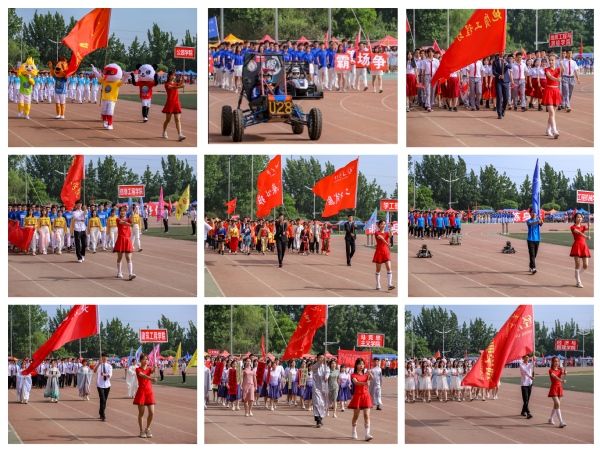 上午9時,開幕式正式開始。伴隨著慷慨激昂的《運動員進行曲》,在國旗、奧林匹克旗、校旗的引導下,彩旗方陣、裁判員方陣、全校22個代表隊方陣,邁著矯健的步伐,喊著嘹亮的口號,依次入場。