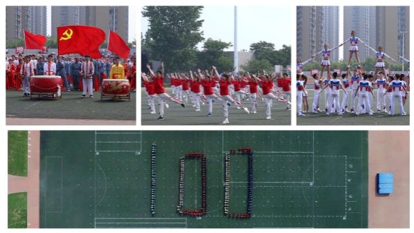 文體表演環節上,由我校17個學院780名同學組成的體育舞蹈表演方隊率先入場,通過變換隊形等組成了“100”與“70”圖案,為中國共產黨成立100周年、長安大學建校70周年獻上熱忱祝福。來自全校24個分會的345位教職工,伴著歡快的旋律,踏著動感節拍為廣大師生帶來了廣播體操表演。之后,我校健美操隊將歡快的節奏與靈活多變的動作相結合,激揚青春活力,傳遞出長大體育“拼搏、奮進、攀登、超越”的精神。最后,腰鼓隊伴隨著激昂的旋律,將整個開幕式現場的氛圍推到了頂點。