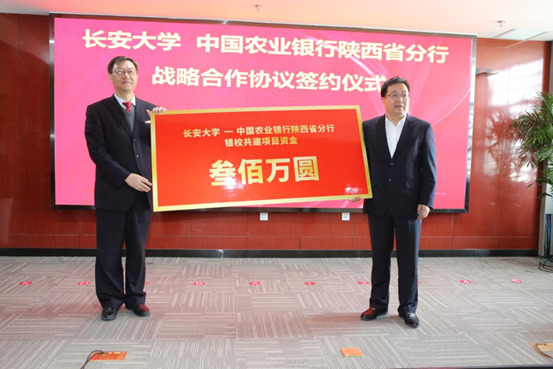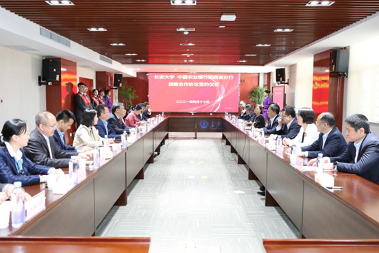 4月17日上午,長安大學—中國農業銀行陜西分行戰略合作協議簽約儀式在長安大學北辰樓14樓會議室舉行。中國農業銀行副行長崔勇、陜西省分行行長馮旭東,我校黨委書記陳志堅,校黨委副書記、副校長彪曉紅出席了簽約儀式。儀式由彪曉紅主持。