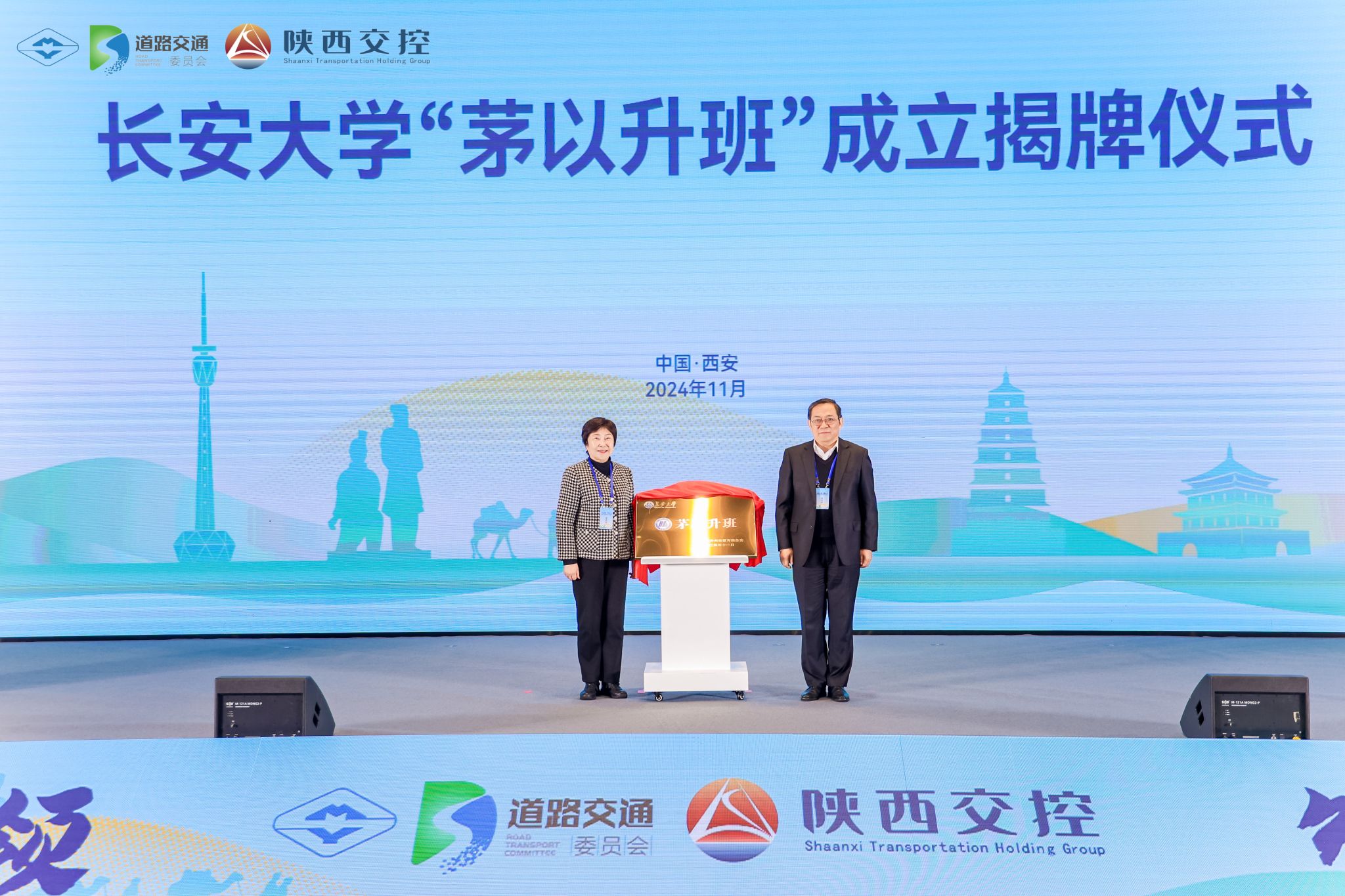 11月12日,全國高速公路綠色智能養護技術研討會暨交通商貿合作發展大會在西安浐灞華邑酒店隆重舉行,會上為“長安大學‘茅以升班’”成立舉行了揭牌儀式。