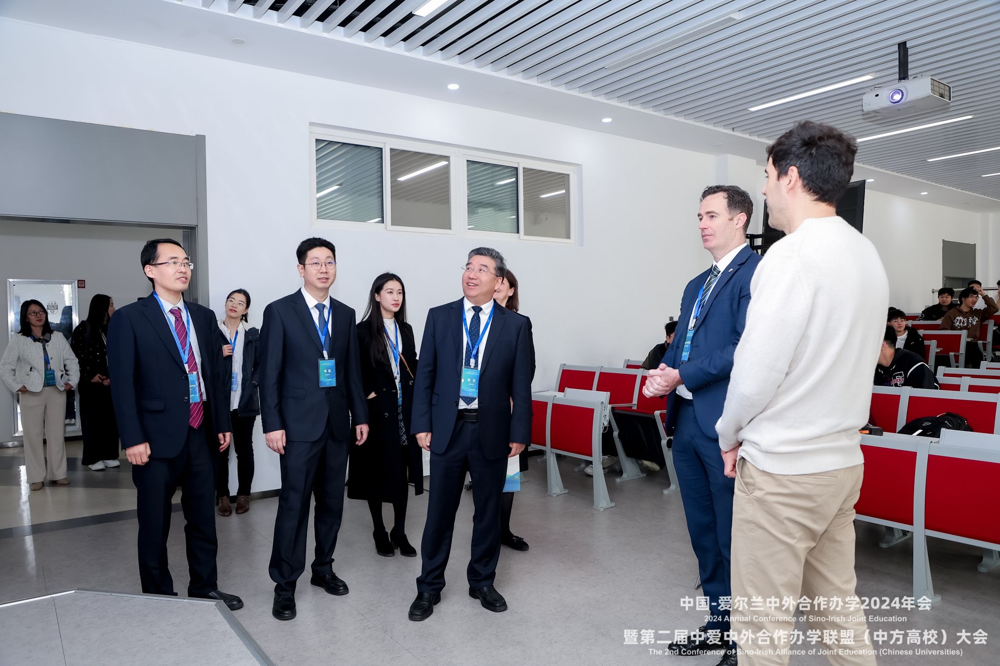 會后,睦百瑞一行參觀了長安都柏林國際交通學院,詳細了解了學院辦學情況與辦學成果,并走進課堂與學院師生進行了交流。