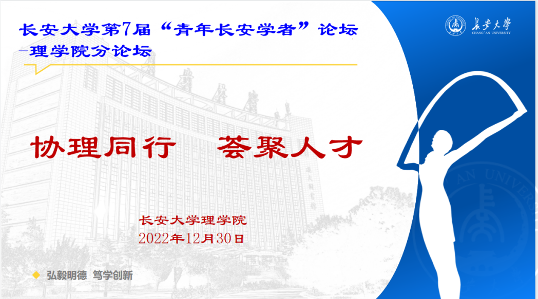 12月30日,長安大學第七屆“青年長安學者”論壇理學院分論壇“協理同行,薈聚人才”成功在線舉辦,來自海內外高校的青年學者與理學院師生相聚云端。學院全體院領導、數學系、信計系、統計系和力學系系主任、教師共30余人參加論壇,論壇由院長助理鄧慶田主持。