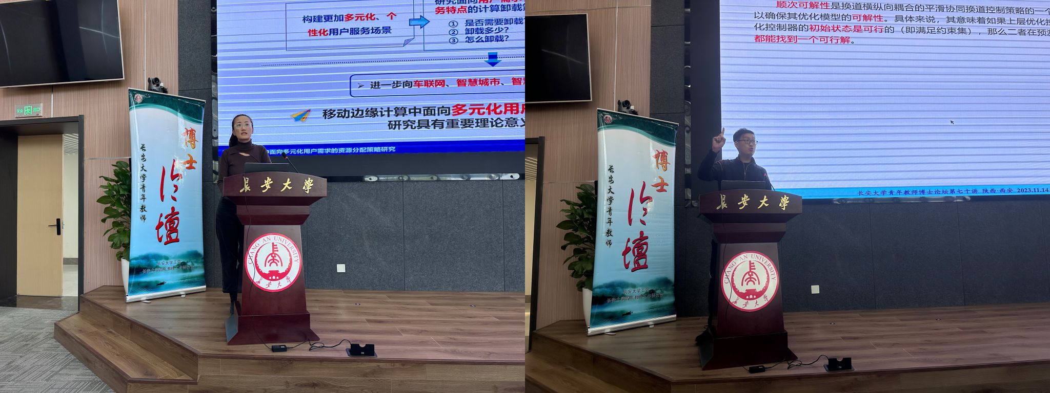 11月14日下午,由工會、青年教師工作委員會主辦,信息工程學院承辦的青年教師博士論壇第七十講在渭水校區師生服務大廳二層第二報告廳舉辦。本次論壇由信息學院青年教師劉樹美和龔思遠兩位老師主講。校工會副主席楊利鋒、信息學院副院長徐志剛、信息學院工會主席李偉等出席本次論壇。學校部分青年教師和研究生參會,報告會由青工委秘書長劉翔主持。