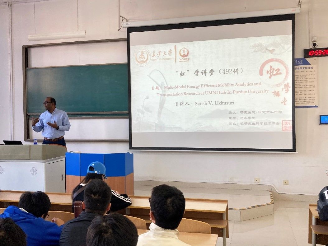 10月15日上午,由研究生院/研究生工作部主辦、汽車學(xué)院承辦、校研究生科學(xué)技術(shù)協(xié)會協(xié)辦的“虹”學(xué)講堂第492講在北校區(qū)鴻遠(yuǎn)教學(xué)樓1101教室舉辦。美國普渡大學(xué)Ukkusuri教授作了題為“Multi-Modal Energy Efficient Mobility Analytics and Transportation Research at UMNI Lab In Purdue University”的報告,汽車學(xué)院副院長牛世峰教授主持報告會,相關(guān)學(xué)院共100余名師生參加講座。