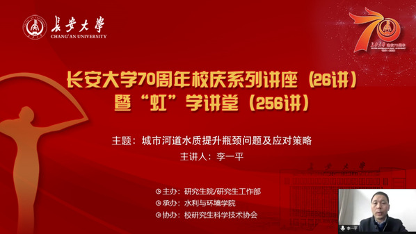 2月3日上午,由研究生院/研究生工作部主辦、水利與環境學院承辦、校研究生科學技術協會協辦的長安大學70周年校慶系列講座(26講)暨“虹”學講堂(256講)通過“騰訊課堂”以線上直播形式順利舉辦。河海大學環境學院李一平教授作了題為“城市河道水質提升瓶頸問題及應對策略”的報告,本次報告由水環學院羅平平教授主持,我校相關學院共計200余名師生參加了此次線上講座。
