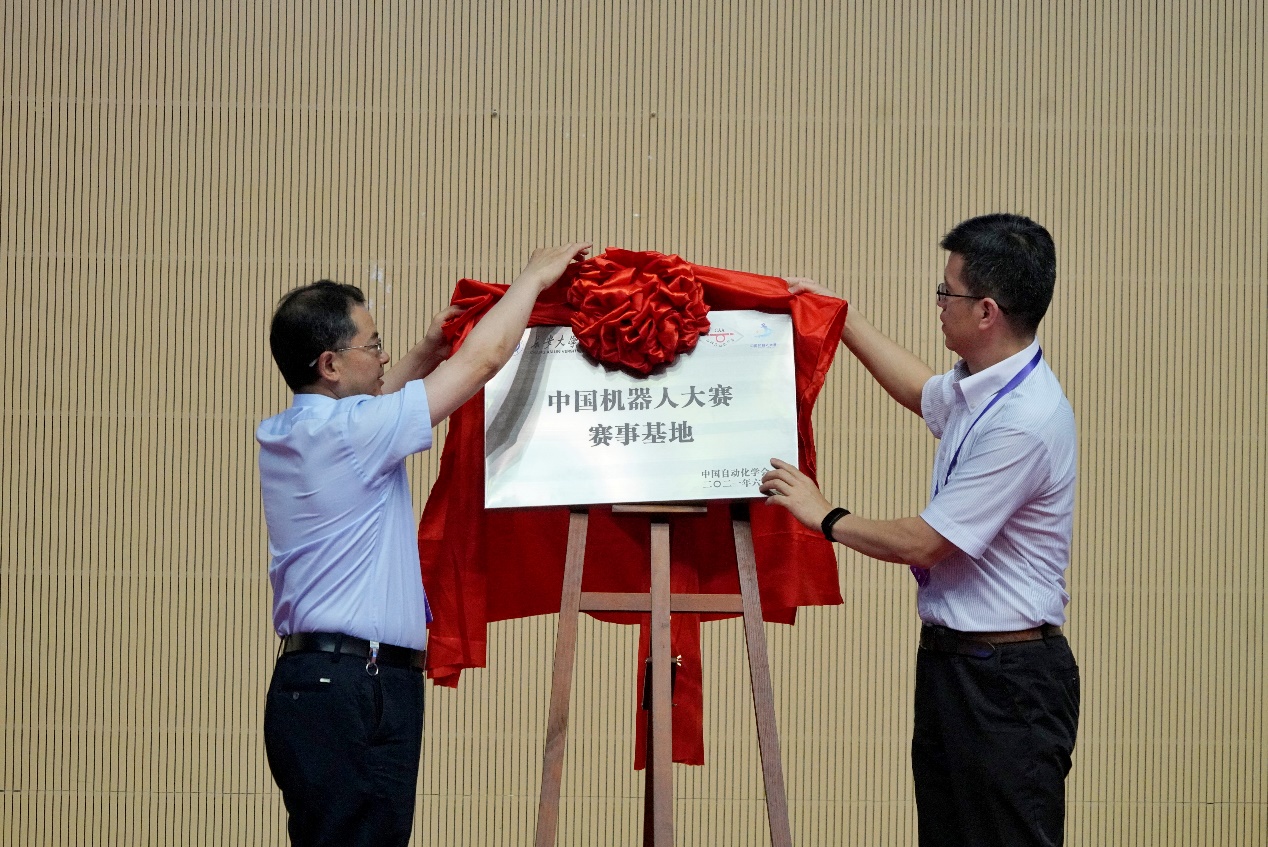 鑒于我校多年參加機器人競賽以及獲得多項優異成績,中國自動化學會授予我校“中國機器人大賽賽事基地”,中國自動化學會機器人競賽工作委員會秘書長王景川與我校副校長趙祥模共同為“中國機器人大賽賽事基地”揭牌。