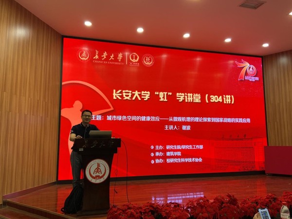 5月28日晚上,由研究生院/研究生工作部主辦、建筑學院承辦、校研究生科學技術協會協辦的“虹”學講堂第304講在南校區東院伯聲報告廳順利舉辦。武漢大學城市設計學院謝波副教授作了題為“城市綠色空間的健康效應——從微觀機理的理論探索到國家戰略的實踐應用”的報告,我校相關學院共計200余名師生參加了此次講座。