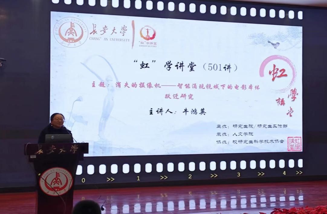 11月9日上午,由研究生院/研究生工作部主辦、人文學(xué)院承辦、校研究生科學(xué)技術(shù)協(xié)會(huì)協(xié)辦的“虹”學(xué)講堂第501講在南校區(qū)東院伯聲報(bào)告廳舉辦。陜西師范大學(xué)牛鴻英教授作題為“消失的攝像機(jī)——智能涌現(xiàn)視域下的電影本體躍遷研究”的報(bào)告,人文學(xué)院副院長杜波主持,相關(guān)學(xué)院共200余名師生參加講座。