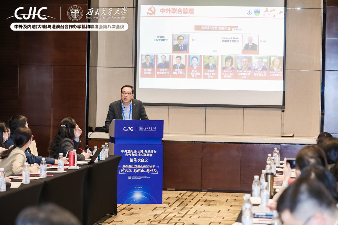 10月17日至19日,中外合作辦學聯席會第八次會議在成都西南交通大學召開。教育部國際司副司長閆炳辰,沈陽大學校長、聯席會秘書長趙彥志,四川省教育廳副廳長陳朝先,以及來自全國百家中外合作辦學機構的300多位代表參會,我校長安都柏林國際交通學院黨總支副書記、副院長姚以亮,院屬各部門相關老師共6人參加了本次會議。本次會議以“新挑戰,新機遇,新作為”為主題,旨在共同推動后疫情時代下的中外合作辦學發展,以更大力度的創新舉措深化教育對外開放,同世界一流資源開展高水平合作辦學。