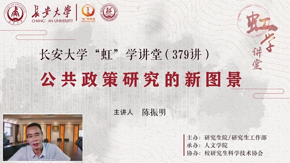 6月5日晚,由研究生院/研究生工作部主辦、人文學院承辦、校研究生科學技術協會協辦的“虹”學講堂第379講以線上講座形式順利舉辦。廈門大學陳振明教授作了題為“公共政策研究的新圖景”的報告,相關學院共300余名師生參加講座。