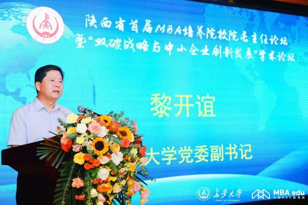 7月18日上午,陜西省首屆MBA培養院校院長主任論壇暨“雙碳戰略與中小企業創新發展學術”論壇在西安舉行。本屆論壇由長安大學經濟與管理學院和中國中小企業研究中心聯合主辦。陜西省19所MBA培養院校的代表及部分中小企業家代表近百人出席活動。論壇開幕式由長安大學經濟與管理學院院長杜強主持。