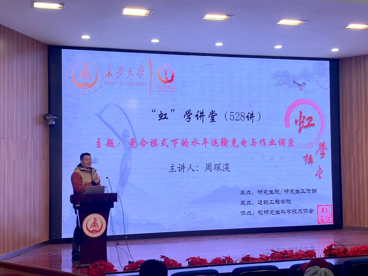 12月8日上午,由研究生院/研究生工作部主辦、運輸工程學院承辦、校研究生科學技術協會協辦的“虹”學講堂第528講在南校區東院伯聲報告廳舉行。西北工業大學周琛淏教授作題為“競合模式下的水平運輸充電與作業調度”的報告,相關學院共200余名師生參加講座。