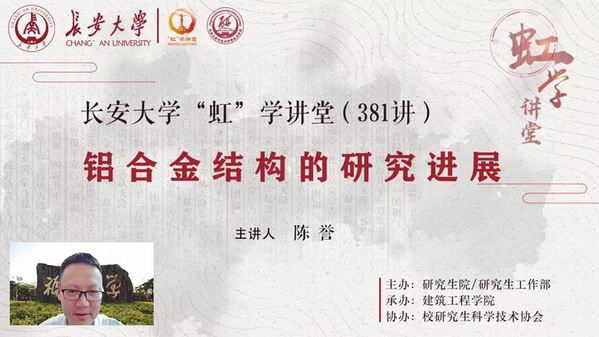 6月6日下午,由研究生院/研究生工作部主辦、建筑工程學院承辦、校研究生科學技術(shù)協(xié)會協(xié)辦的“虹”學講堂第381講以線上講座形式舉行。福州大學陳譽教授作了題為“鋁合金結(jié)構(gòu)的研究進展”的報告,建筑工程學院院長邢國華主持報告會,相關(guān)學院270余名師生聆聽講座。