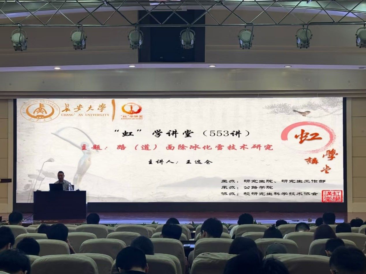 4月27日上午,由研究生院、研究生工作部主辦,公路學院承辦,校研究生科學技術協會協辦的“虹”學講堂第553講在南校區北院學術交流中心舉辦。長安大學王選倉教授作題為“路(道)面除冰化雪技術研究”的報告,相關學院共200余名師生參加講座。