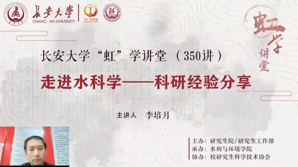3月19日下午,由研究生院/研究生工作部主辦、水利與環(huán)境學(xué)院承辦、校研究生科學(xué)技術(shù)協(xié)會協(xié)辦的“虹”學(xué)講堂第350講以線上講座形式順利辦。長安大學(xué)南校區(qū)東院教學(xué)區(qū)疫情防控工作組教學(xué)組副組長、水利與環(huán)境學(xué)院副院長李培月教授作了題為“走進水科學(xué)——科研經(jīng)驗分享”的報告,相關(guān)學(xué)院共400余名師生參加講座。