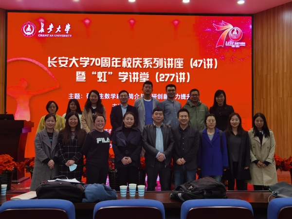 3月31日上晚,由研究生院/研究生工作部主辦、理學院承辦、校研究生科學技術協會協辦的長安大學70周年校慶系列講座(47講)暨“虹”學講堂(277講)在南校區東院伯聲報告廳順利舉辦。理學院董安國教授作了題為“研究生數學建模簡介與科研創新能力提升”的報告,我校相關學院共計250余名師生參加了此次講座。本次報告由理學院黨委副書記屈穎主持。