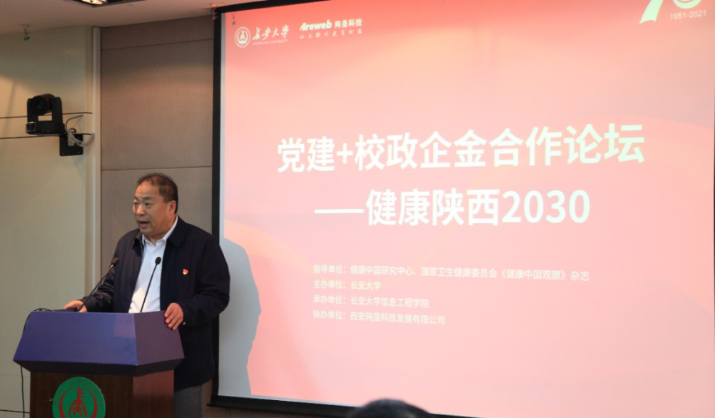 本次論壇由健康中國研究中心、國家衛(wèi)生健康委《健康中國觀察》雜志社指導(dǎo)、長安大學(xué)主辦、長安大學(xué)信息工程學(xué)院承辦、西安網(wǎng)是科技發(fā)展有限公司協(xié)辦。論壇以“健康陜西2030”為主題。長安大學(xué)副校長趙祥模、國家衛(wèi)生健康委《健康中國觀察》雜志副社長王永進(jìn)、陜西省衛(wèi)生健康委員會(huì)黨組成員劉亞軍、中國建設(shè)銀行陜西省分行副行長王文莉、西部證券股份有限公司副總經(jīng)理范江峰、西安網(wǎng)是科技發(fā)展有限公司總經(jīng)理馬航昌、西安交通大學(xué)人文社會(huì)科學(xué)學(xué)院黨委書記許佳輝、長安大學(xué)信息工程學(xué)院黨委書記胡予欣、院長安毅生及學(xué)院全體領(lǐng)導(dǎo)、地市衛(wèi)生健康委員會(huì)代表、區(qū)縣衛(wèi)生健康局代表、相關(guān)企業(yè)、金融機(jī)構(gòu)代表出席了會(huì)議。論壇由長安大學(xué)信息工程學(xué)院黨委書記胡予欣主持。