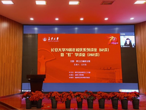 4月5日晚,由研究生院/研究生工作部主辦、信息工程學院承辦、校研究生科學技術協會協辦的長安大學70周年校慶系列講座(52講)暨“虹”學講堂(282講)在南校區東院伯聲報告廳及線上“騰訊會議”同步舉辦。陜西皖通科技有限責任公司總經理王大樂作了題為“樹立正確就業觀”的報告,我校相關學院共計200余名師生參加了此次講座。