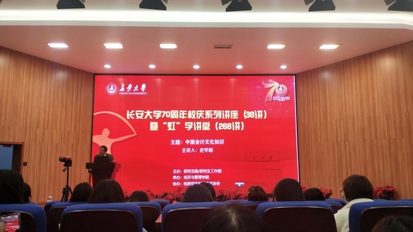 3月19日晚,由研究生院/研究生工作部主辦、經濟與管理學院承辦、校研究生科學技術協會協辦的長安大學70周年校慶系列講座(38講)暨“虹”學講堂(268講)在南校區東院伯聲報告廳順利舉辦。陜西省公路局黨委委員、總會計師史罕明作了題為“中國會計文化知識”的報告,我校相關學院共計220余名師生參加了此次講座。