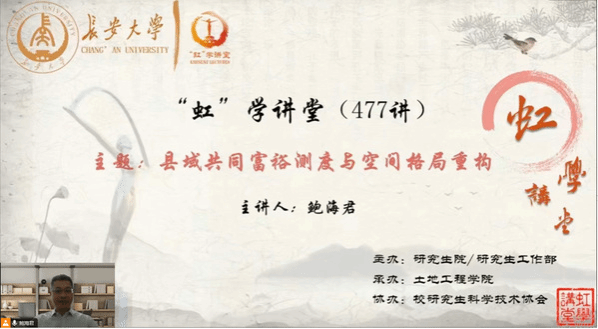 8月6日上午,由研究生院/研究生工作部主辦、土地工程學院承辦、校研究生科學技術協會協辦的“虹”學講堂第477講以線上線下相結合的形式順利舉辦。浙大城市學院鮑海君教授作了題為“縣域共同富裕測度與空間格局重構”的報告,土地工程學院王曉峰教授主持,相關學院共120余名師生參加講座。